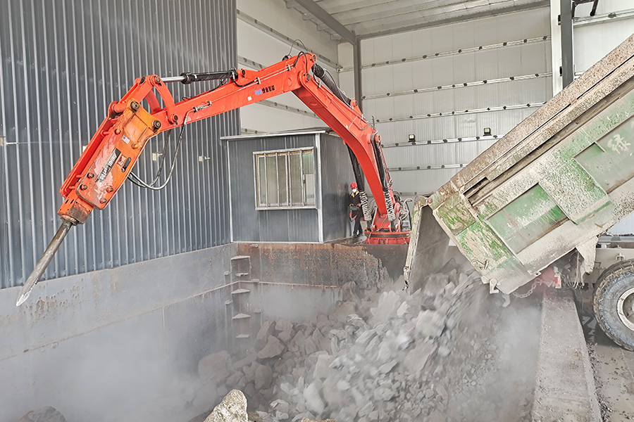 3.  砂石骨料行業:砂石骨料廠破碎站、鄂破口料倉口阻塞二次破碎和堵料清理;